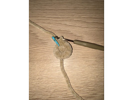 A maradék helyet tömőanyaggal tömje ki, majd vágja el egy hosszabb fonalat hagyva és varrja össze