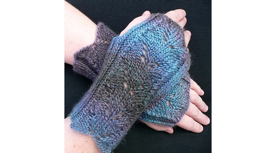 Ez az ujjatlan kesztyű egy nagyon szép csipkemintával készült, amely finom, repülő szárnyakra emlékeztet. A csipkeminta hullámzását a legtöbb hosszan színátmenetes fonal, mint pl. a Noro Cashmere Island, szépen kiadja, de nagyon mutatós lehet egyszínű fonalból is. A kesztyű köthető síkban is, ezzel megkönnyítve a csipkeminta kötését. Az eredeti kesztyű egyszerű, gomblyuk-szerű nyílással készült a hüvelykujj számára, a leírásban is ez szerepel, de szerepel benne a kötött hüvelykujj is. A patent minta nagyon rugalmas, és ezáltal a méret megfelelő a legtöbb női kézre, de könnyen át is méretezhető néhány szem hozzáadásával a patentkötéssel készült részen.